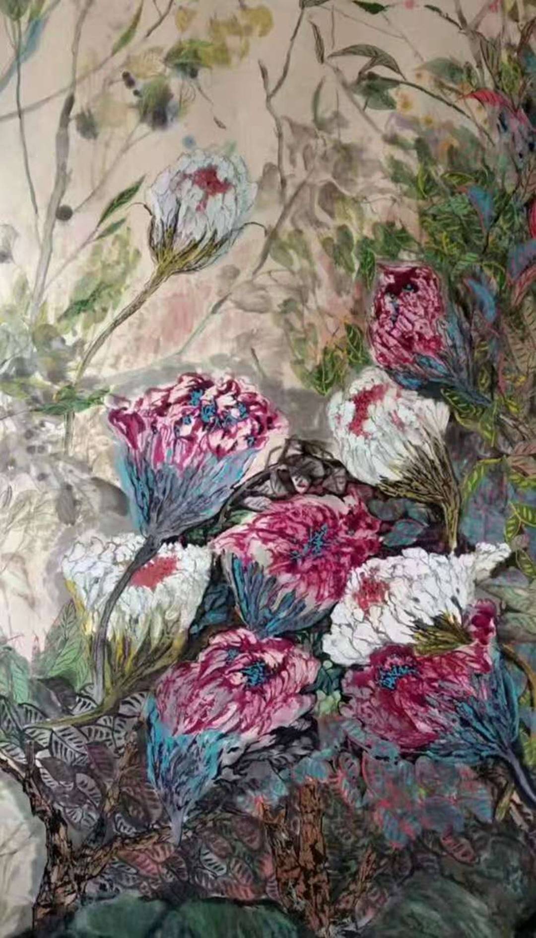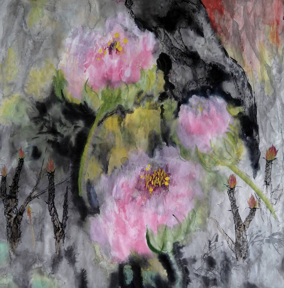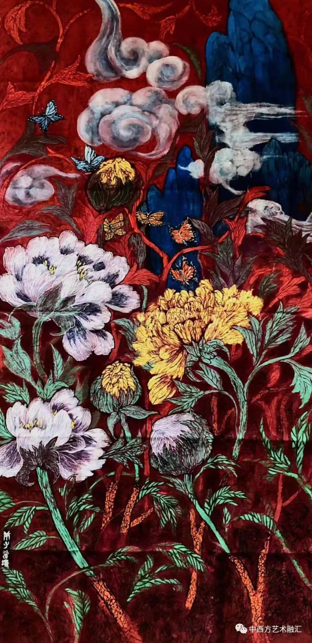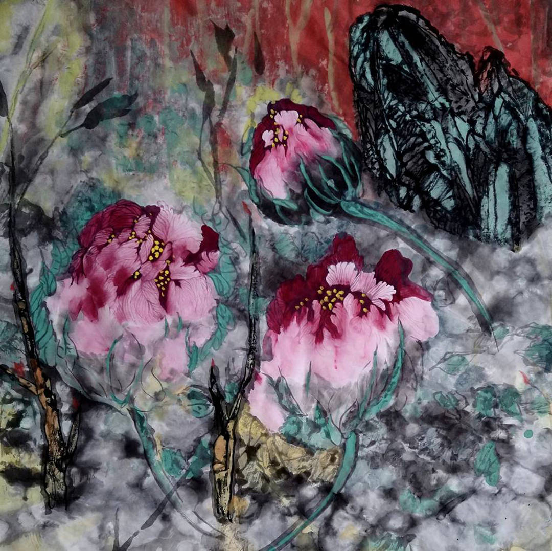 主题创作《御花园印象》,思路缘起是在西方世界做的中国梦,梦境是自己在御花园看姹紫嫣红,醒来赶紧画下梦境的印象。