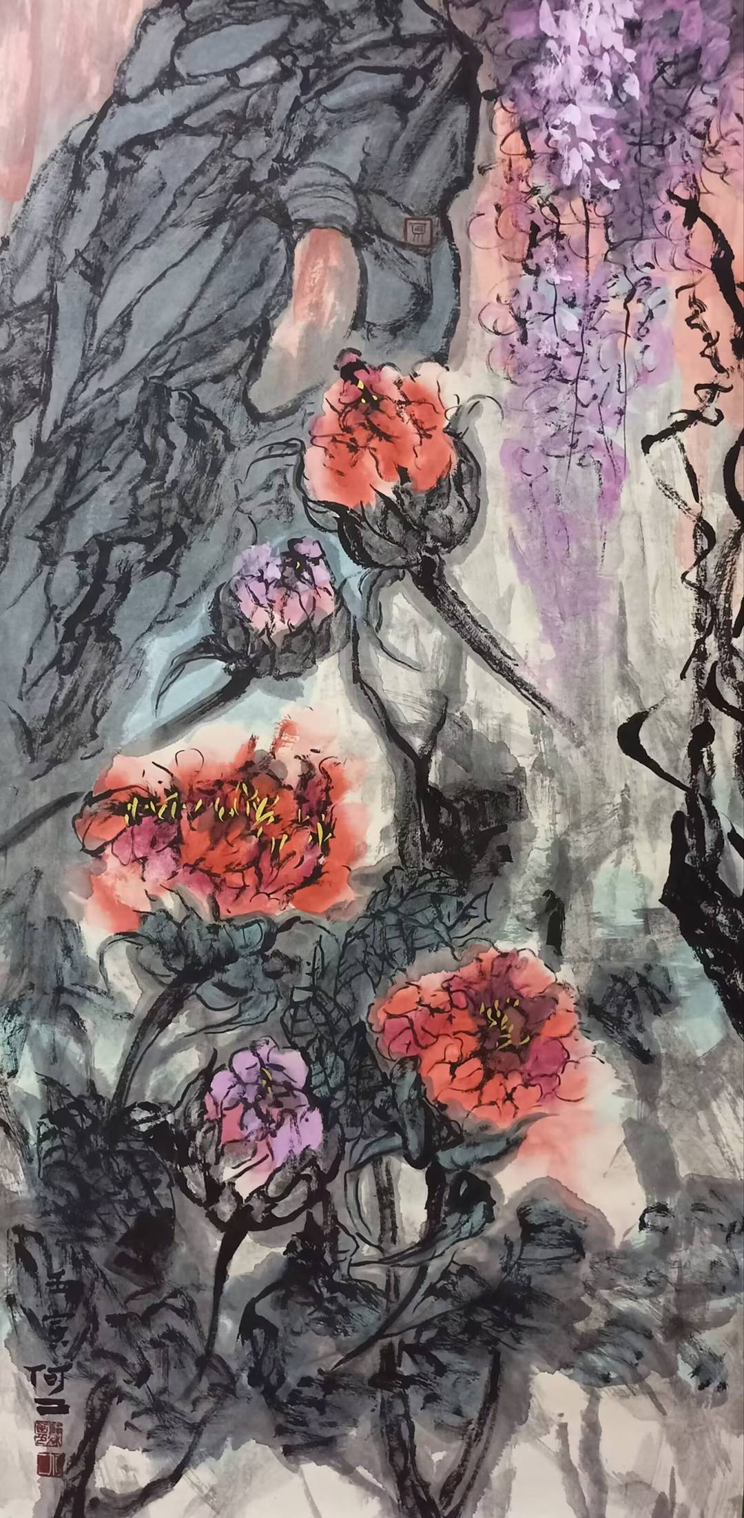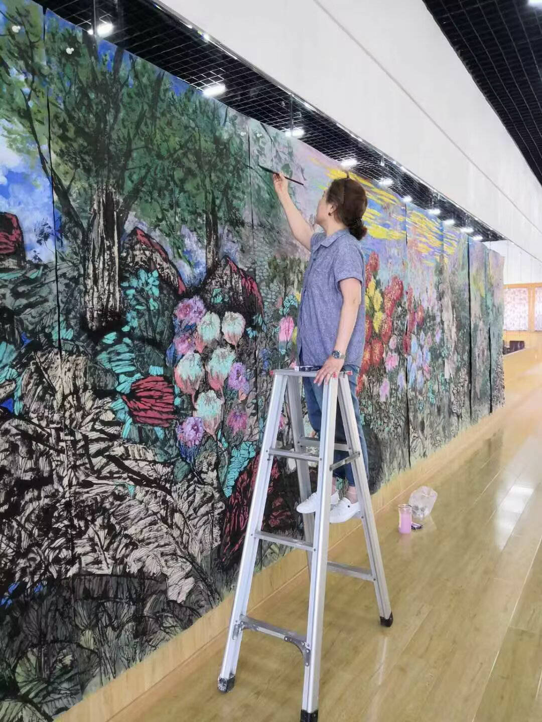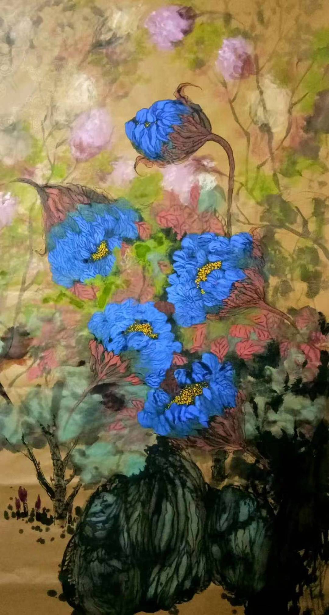 主题创作《御花园印象》,思路缘起是在西方世界做的中国梦,梦境是自己在御花园看姹紫嫣红,醒来赶紧画下梦境的印象。