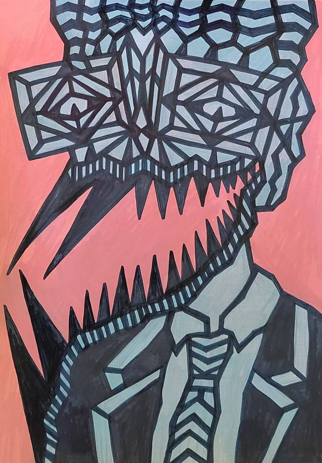 梁柱~《自画像系列》~纸本绘画~2025年创作