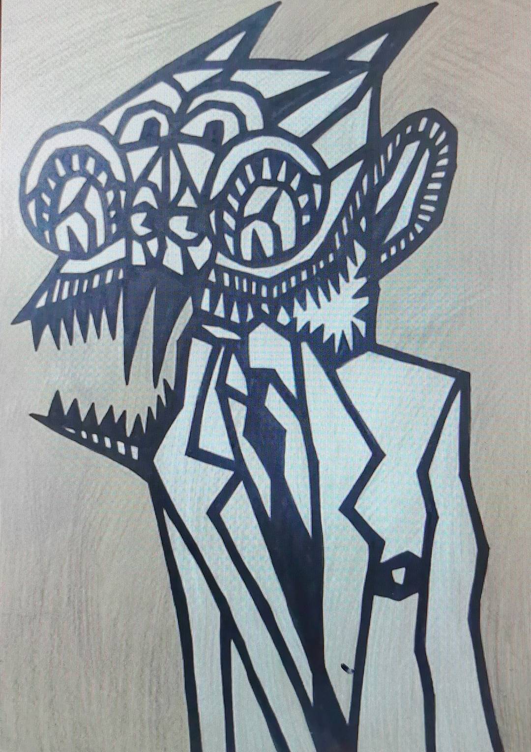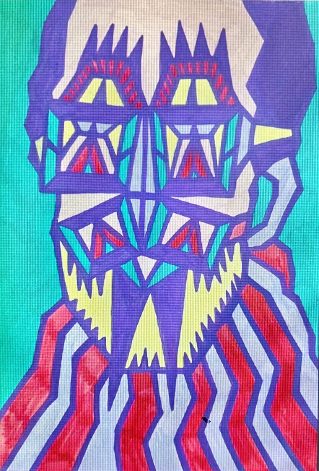 梁柱~《自画像系列》~纸本绘画~2019年创作