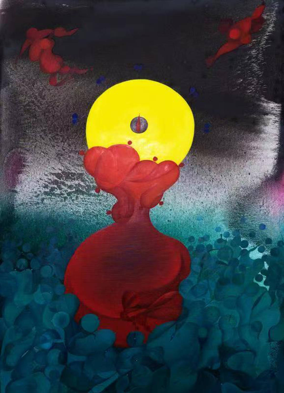 2022年3月,油画作品“飞天灵动”参加首届天津抽象艺术展。