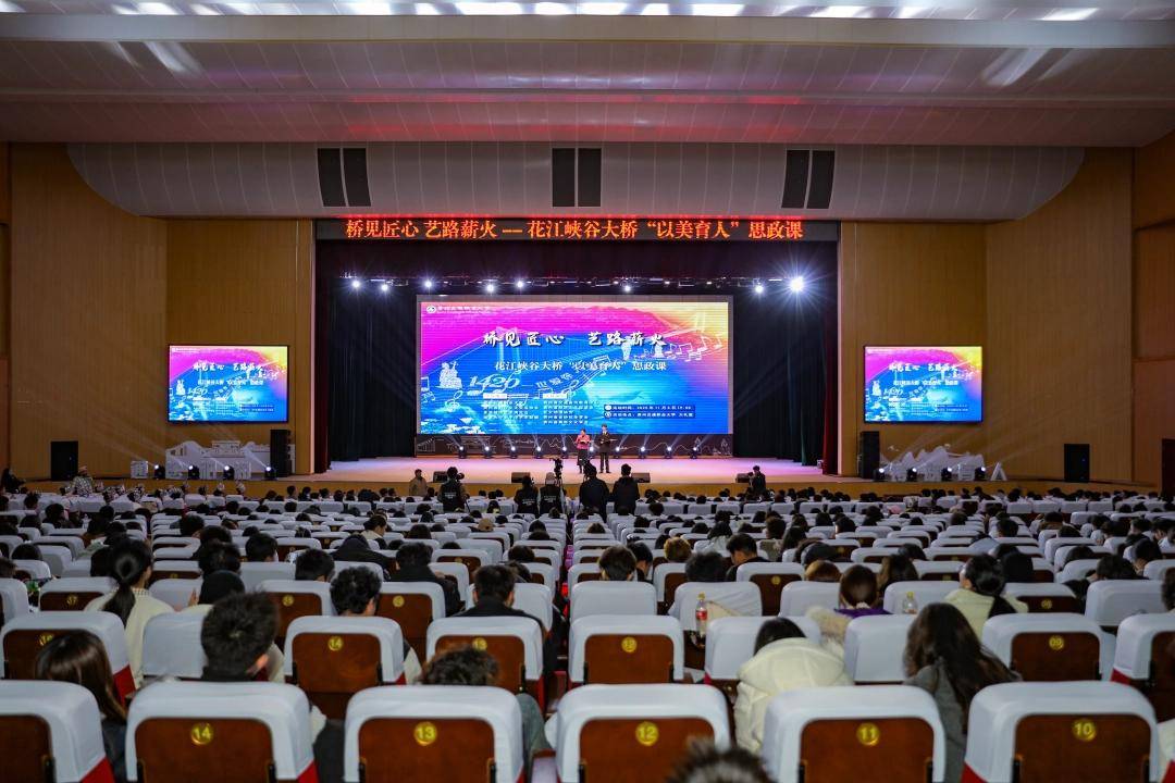 当晚,“桥见匠心 艺路薪火”花江峡谷大桥“以美育人”思政课晚会在学校大礼堂温情上演。晚会分为“桥见匠心”与“薪火梦想”两个篇章,以花江峡谷大桥建设为叙事主线,通过歌舞、器乐演奏、文化讲述等形式,展现交通文化的深厚底蕴与工匠精神的时代价值。