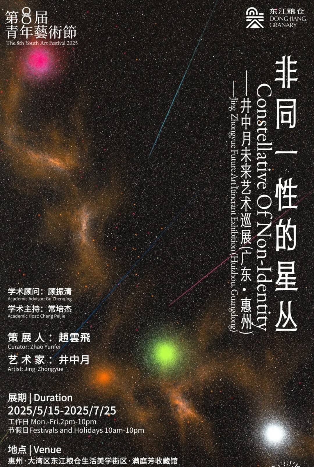 2025年5月15日,由一粮文化产业发展(广东)有限公司主办的“非同一性的星丛——井中月未来艺术巡展”(广东•惠州)将在东江粮仓满庭芳收藏馆正式拉开序幕。本次展览由著名艺术批评家、广州美术学院客座教授顾振清担任学术顾问,中国社会科学院哲学研究所博士后、中国人民大学文学院副院长常培杰担任学术主持,展期将持续至2025年7月25日。