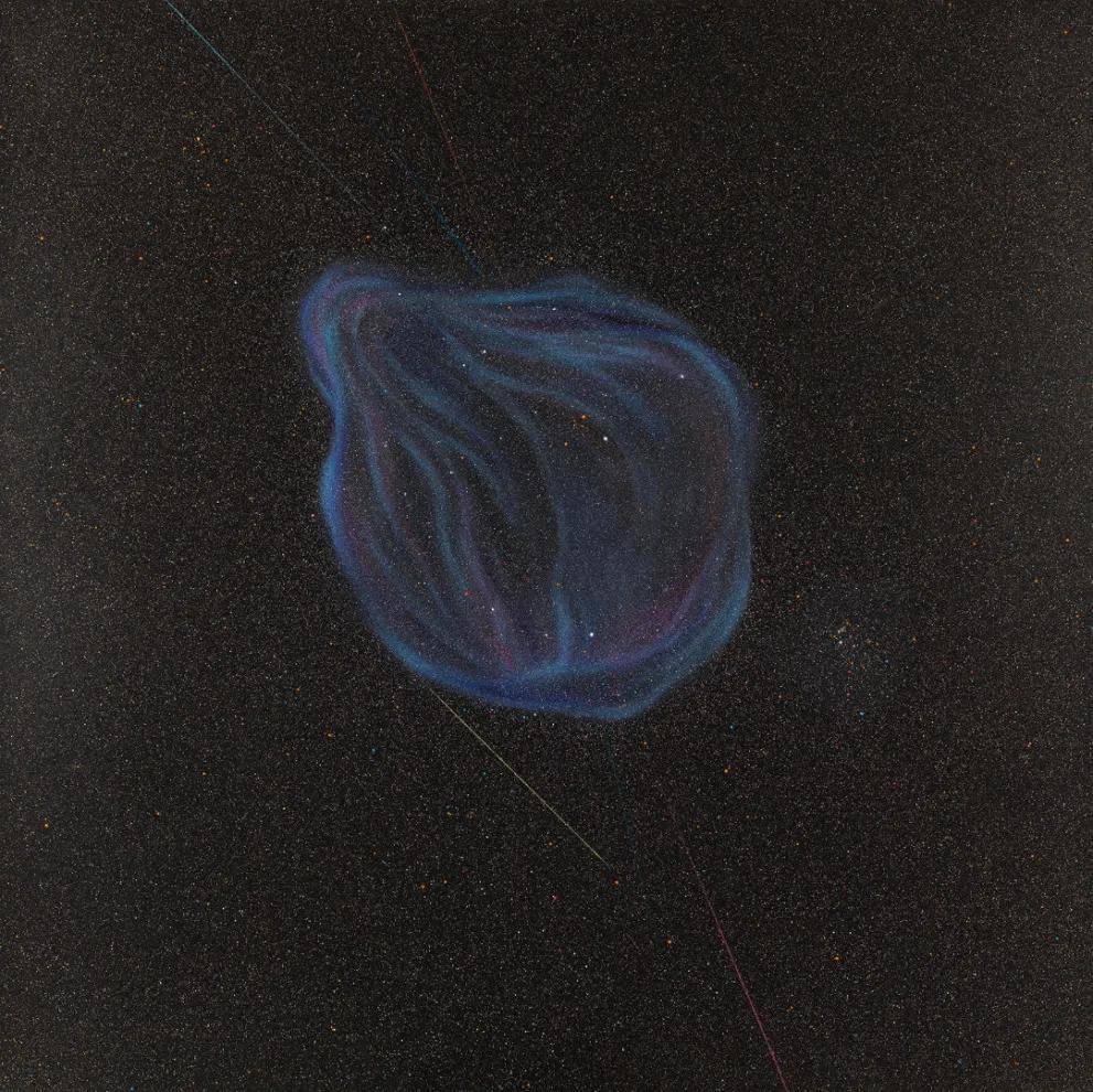 井中月的《非同一性的星丛》将划分宇宙的基本单位“星丛景象”作为主要的符号表达,去感知星空格局的对象。它也是一个非稳定、差异化、关联性的集合体,它们之间拥有相互的约束力和共同的本源,同时以去中心化、多元链接、自由组合而存在。另外,井中月对于作品的构成、色调、关系的把控非常娴熟,有着个人独特的语言特征。