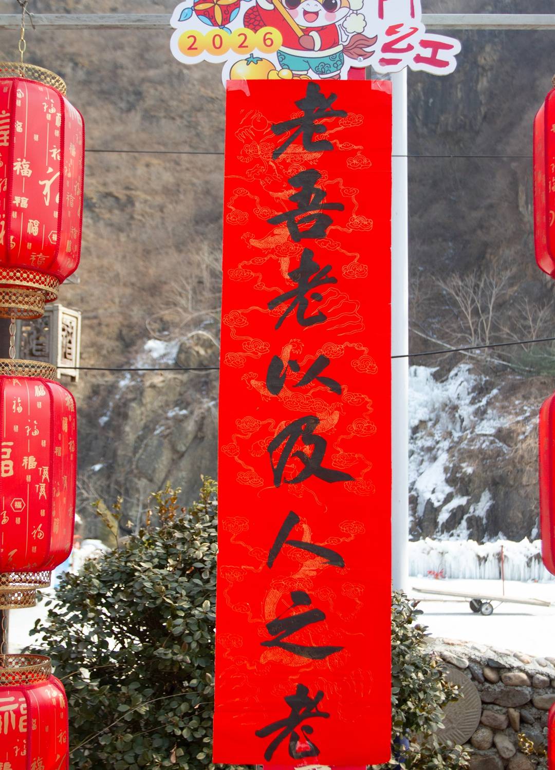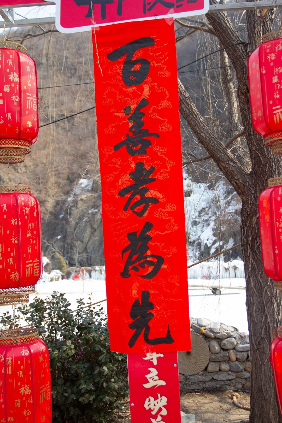 活动当日,阳光和煦、春风拂面,房庄村青山环绕、景致宜人。活动现场悬挂着一幅幅笔墨隽永的孝老敬亲书法作品,氛围雅致又温馨。