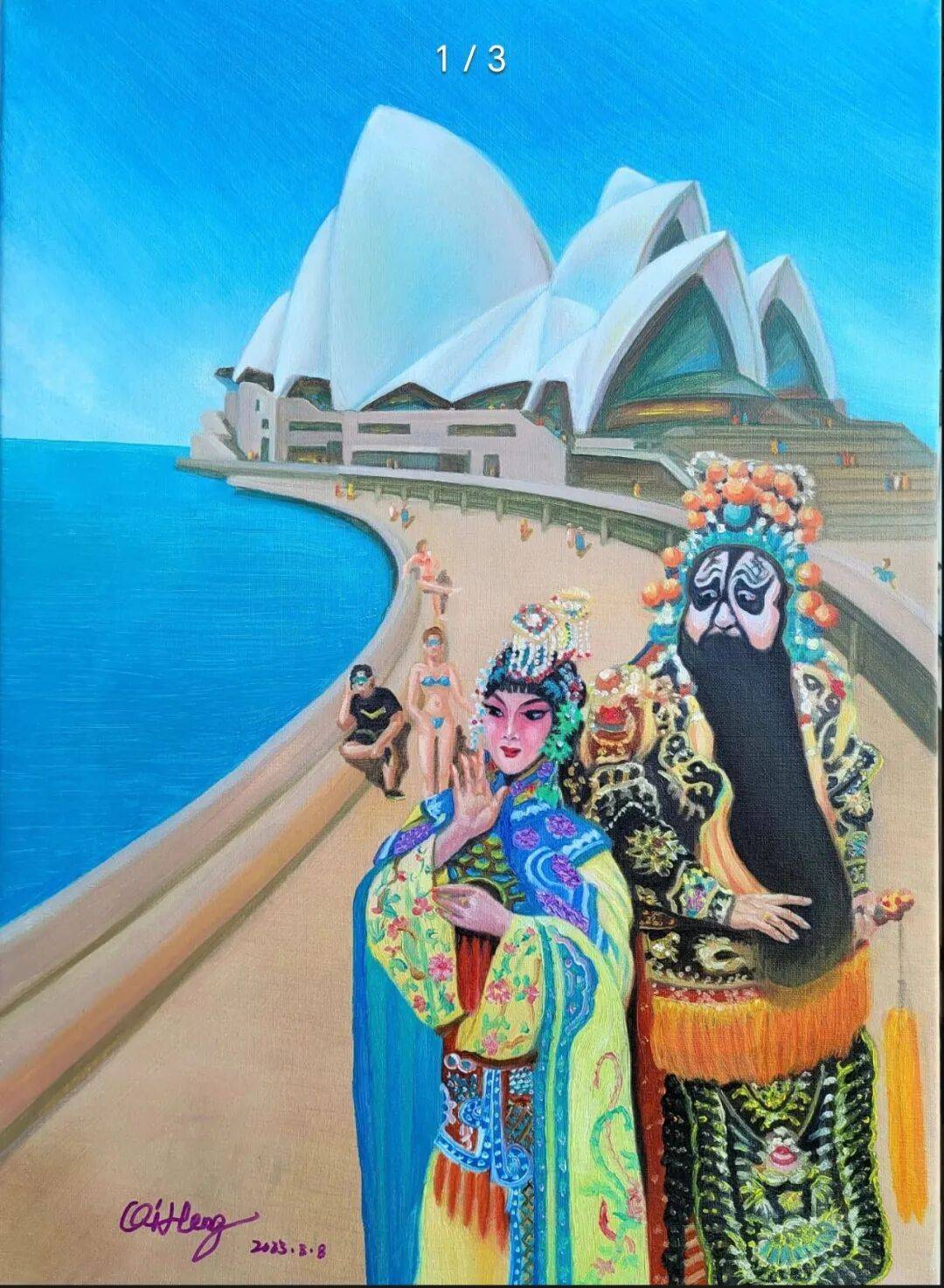 把京剧推向国际,构思<霸王别姬>当代油画京剧走向澳洲悉尼歌剧院