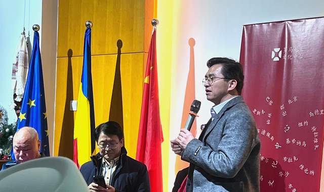 嘉宾介绍暖场后,随即进入主办方代表致辞环节。罗马尼亚驻华文化中心主任Liviu Taranu率先登台,从罗马尼亚文化传播视角,阐述了中罗诗歌交流对两国文化往来的推动作用。