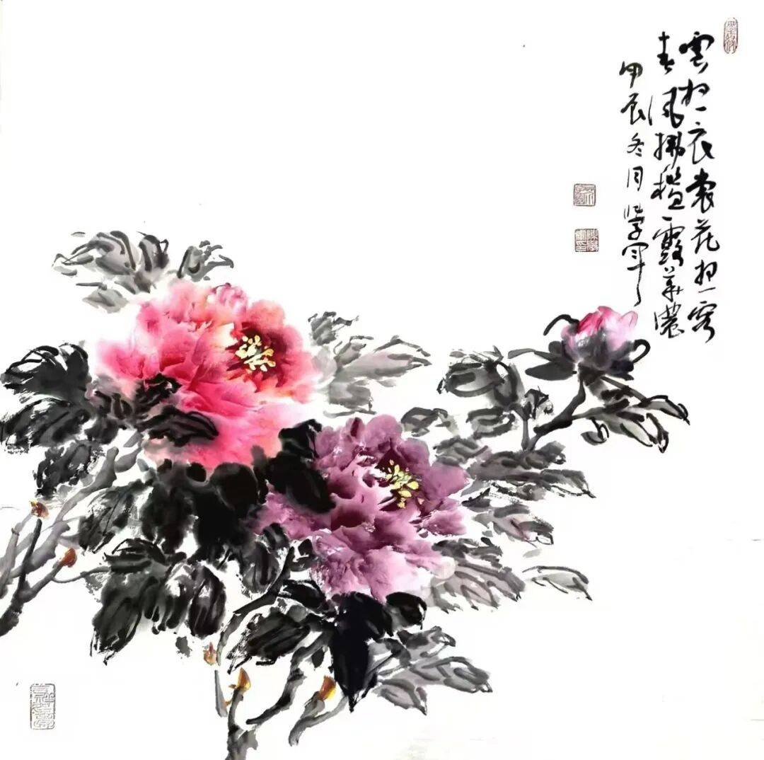 春风拂槛露华浓 2024年创作 宣纸 68cmx68cm 国画花鸟